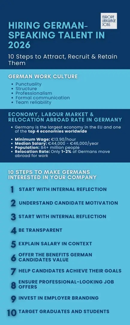 Looking at the economy in 2026, hiring German-speaking talents has become a strategic priority for many international companies operating in Europe.