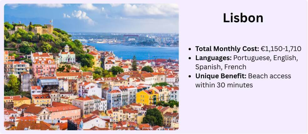 Lisbon has exploded as a remote work hub over the past five years. The combination of year-round sunshine, affordable living, and a thriving startup scene makes it irresistible. Portuguese locals generally speak excellent English, but your Portuguese, Spanish, or French skills add value in customer-facing roles.