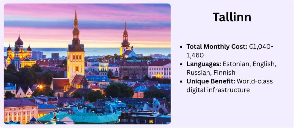 Language Landscape: English works everywhere professionally. Estonian dominates official contexts. Russian speakers comprise about 25% of the population. Finnish understood by many. Your multilingual skills truly shine here.