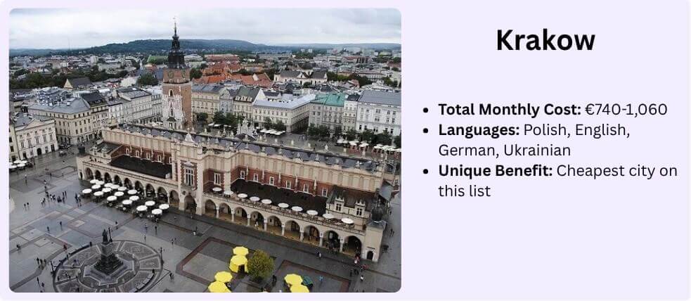 Language Learning: Krakow offers excellent Polish language courses for foreigners. Many multilingual professionals use the city as a base for mastering Polish while working remotely.