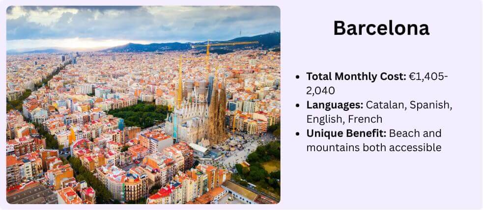 Barcelona needs little introduction. Gaudi's architecture draws millions annually. The beach meets urban sophistication. The startup ecosystem ranks among Europe's strongest. Catalan, Spanish, English, and French all matter professionally. The multilingual environment feels natural.