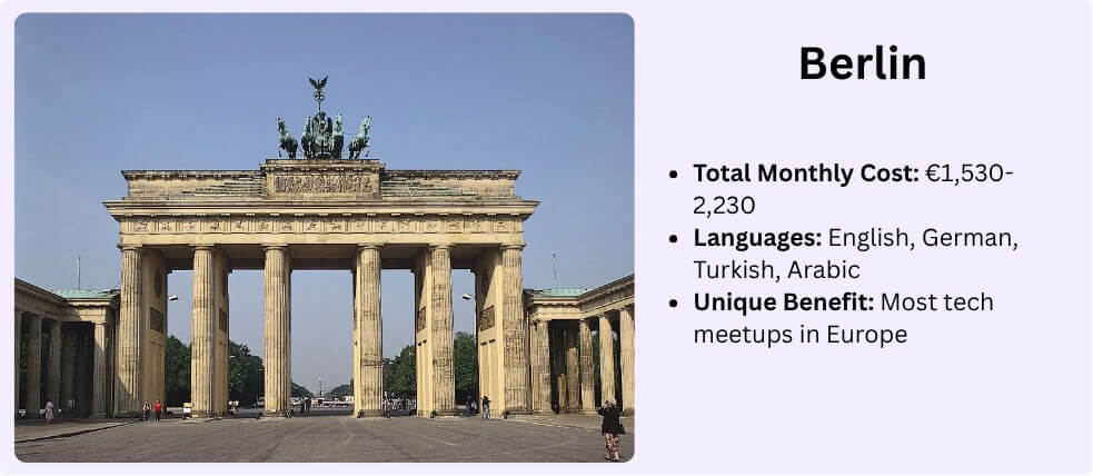 Networking Goldmine: Berlin hosts more tech meetups than any other European city. Language-specific networking events happen weekly across the city.