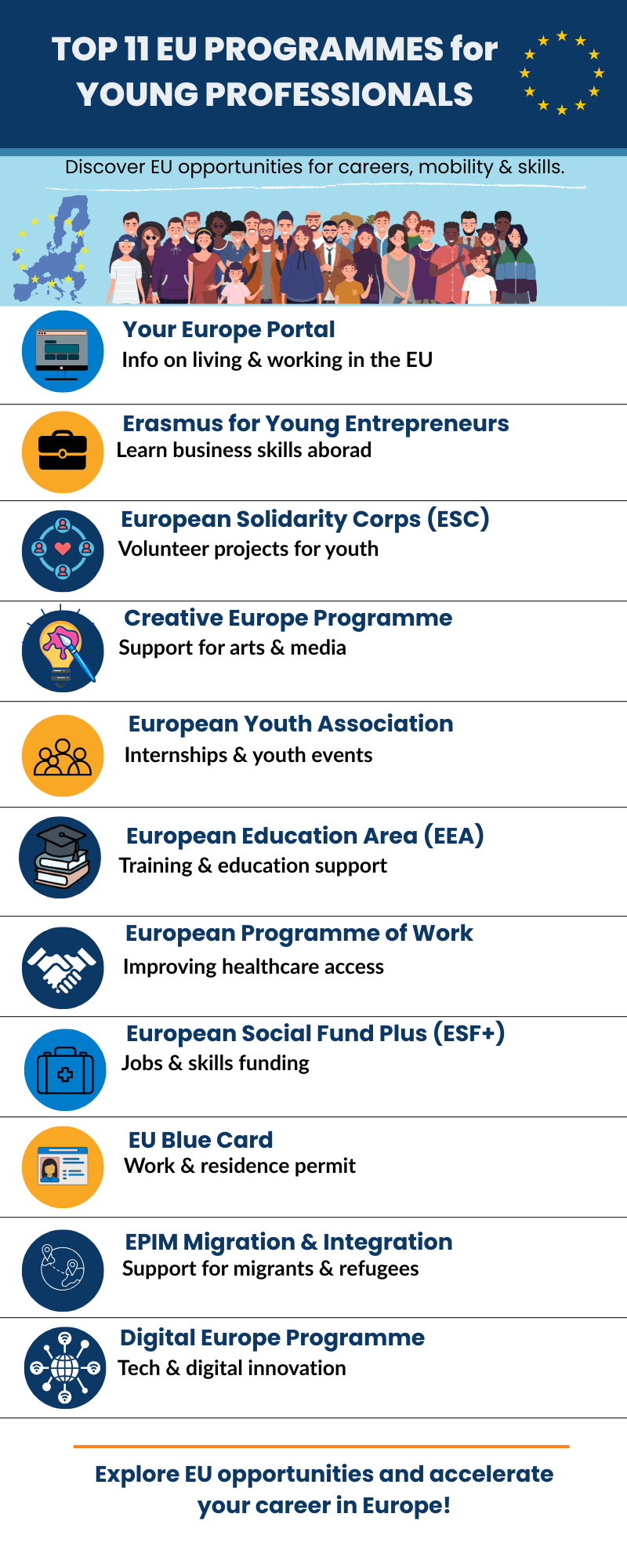 This Europe Day, we want to highlight the various forms of help the European Union provides for its citizens in the work sector. In this article, we will outline some of the most interesting European programmes and resources for young professionals to accelerate their career growth.
