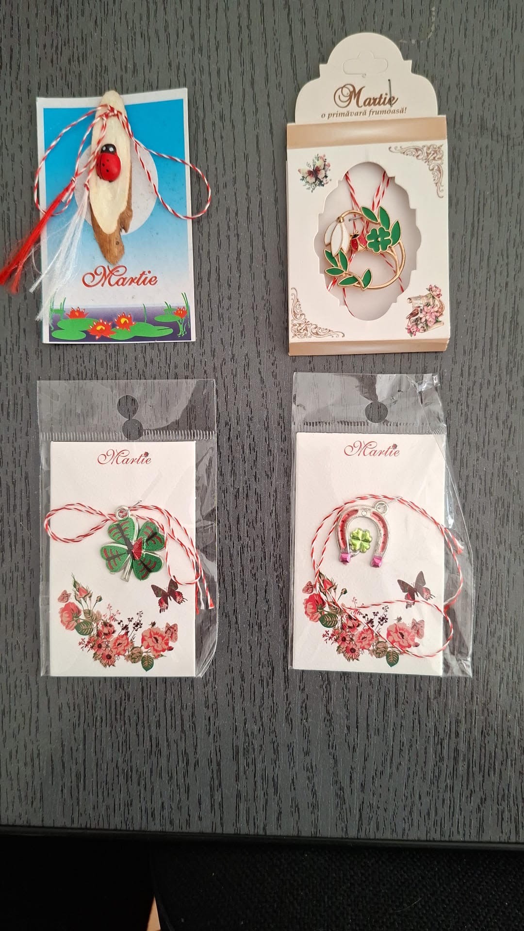 However, the “original” charms consist in general symbols of luck for Romanian folklore such as the horseshoe, chimney sweep, clover, ladybird or the first flowers of spring named ghiocei. I asked my mom to show me what she received this year and you can see some models below!